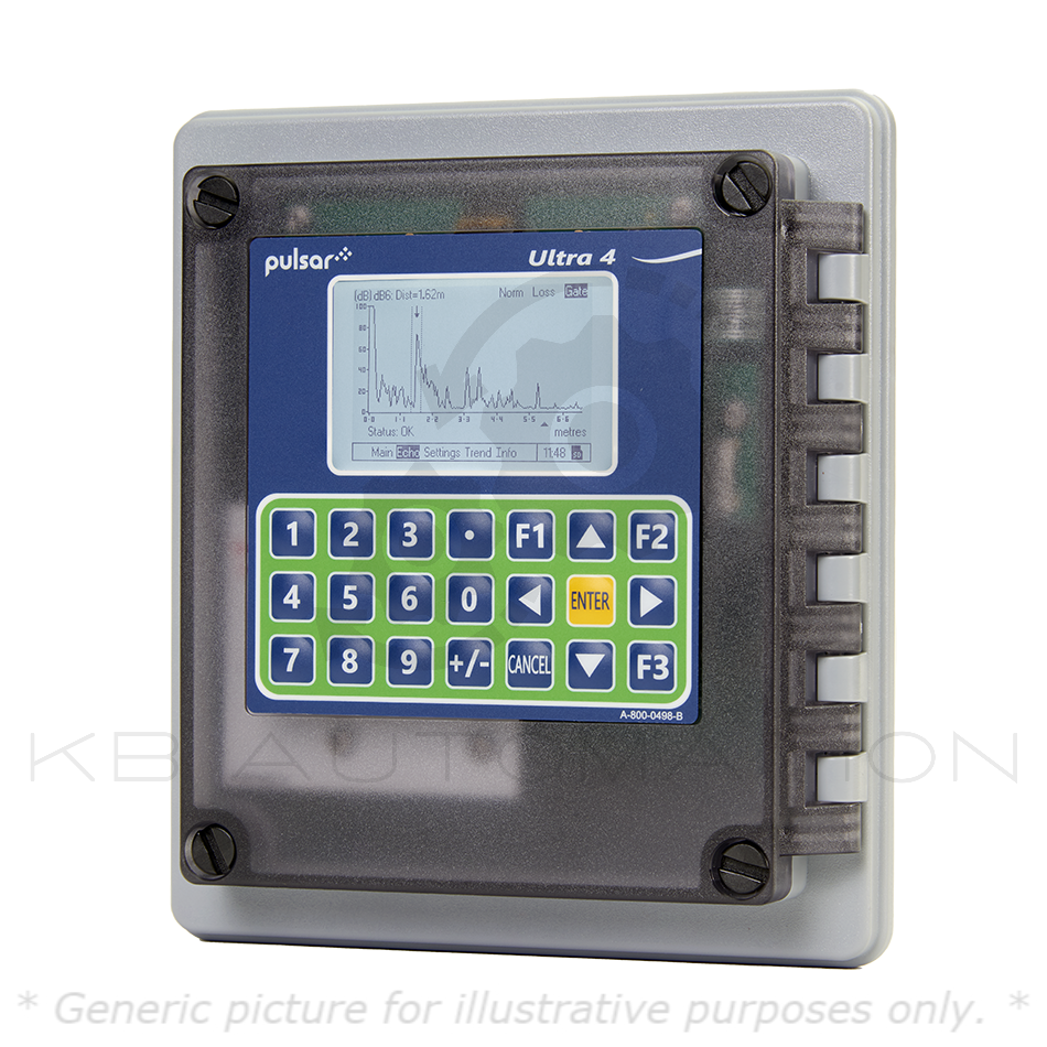 Ultra 4 measurement control unit; Fascia mount; level, volume, open channel flow, and pump control applications; 4 relay outputs, programmable for alarm or control; multifunctional display; setup and configuration with the integral keyboard or local connection to a PC