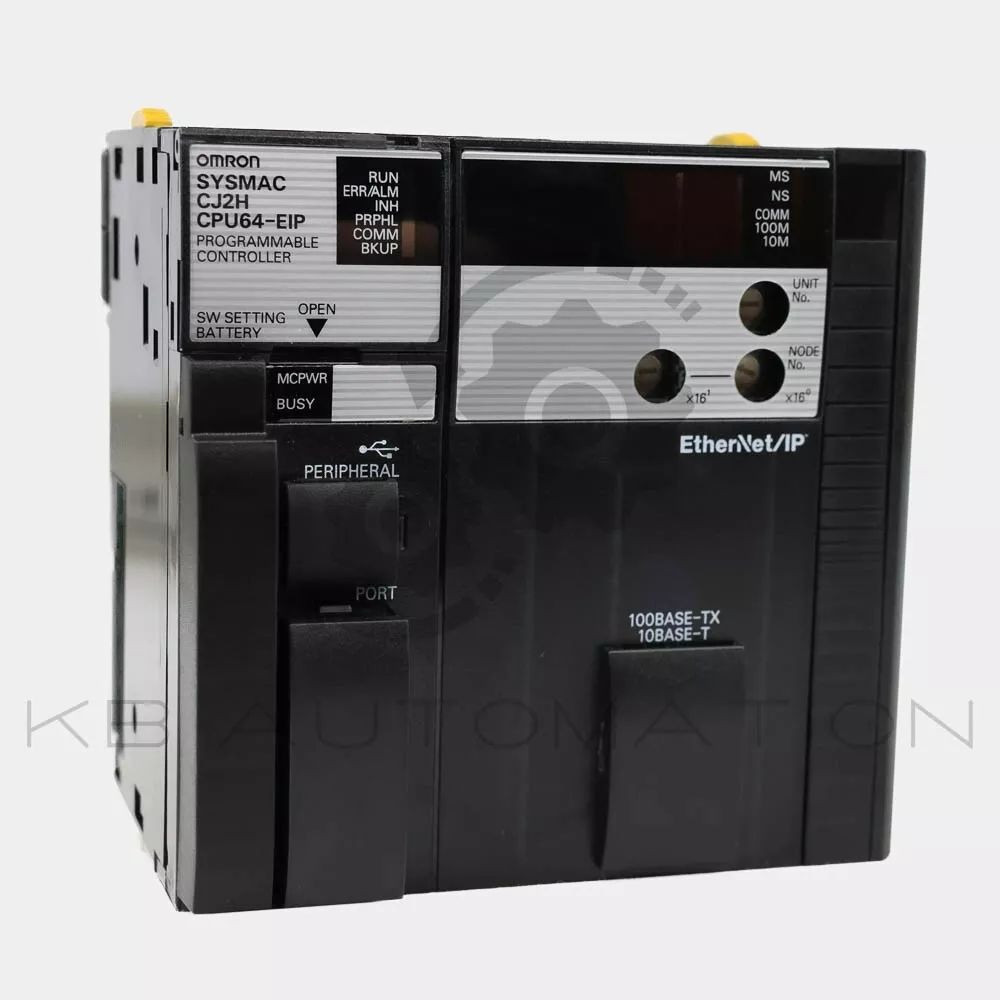 CJ2-Series CPU with built-in EtherNet/IP port; 50k steps program; 160k words data memory (DM: 32k words, EM: 32k words x 4 banks); 2560 I/O max; Communication ports: EtherNet/IP, Ethernet TCP/IP, Serial RS-232C, USB; 3 expansion racks max.