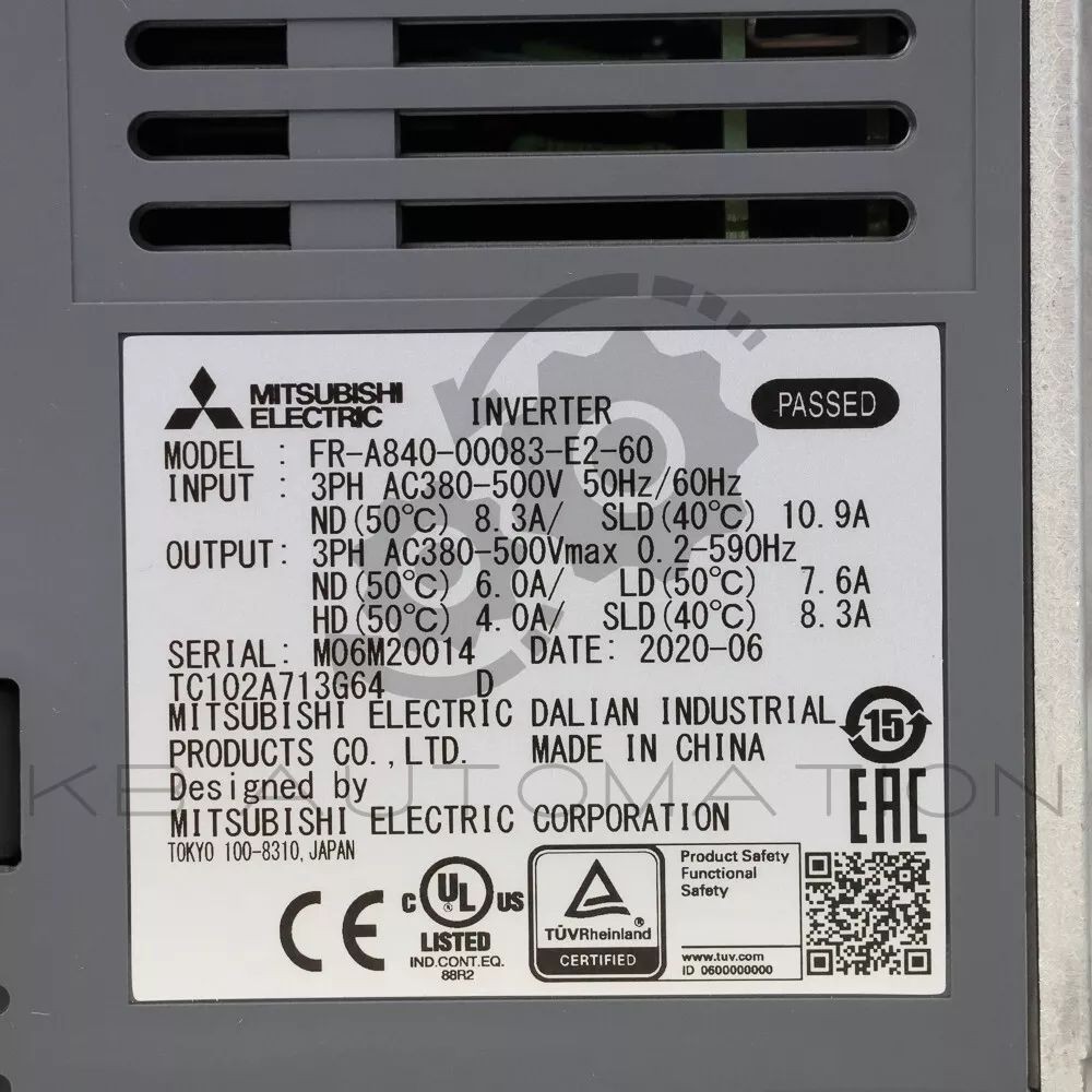 FR-A800 Series Frequency inverter; Pn: 1,5-3,7kW; 3x380-500V;In max: 8,3A;(2,2kW; 6A); IP20; Ethernet port